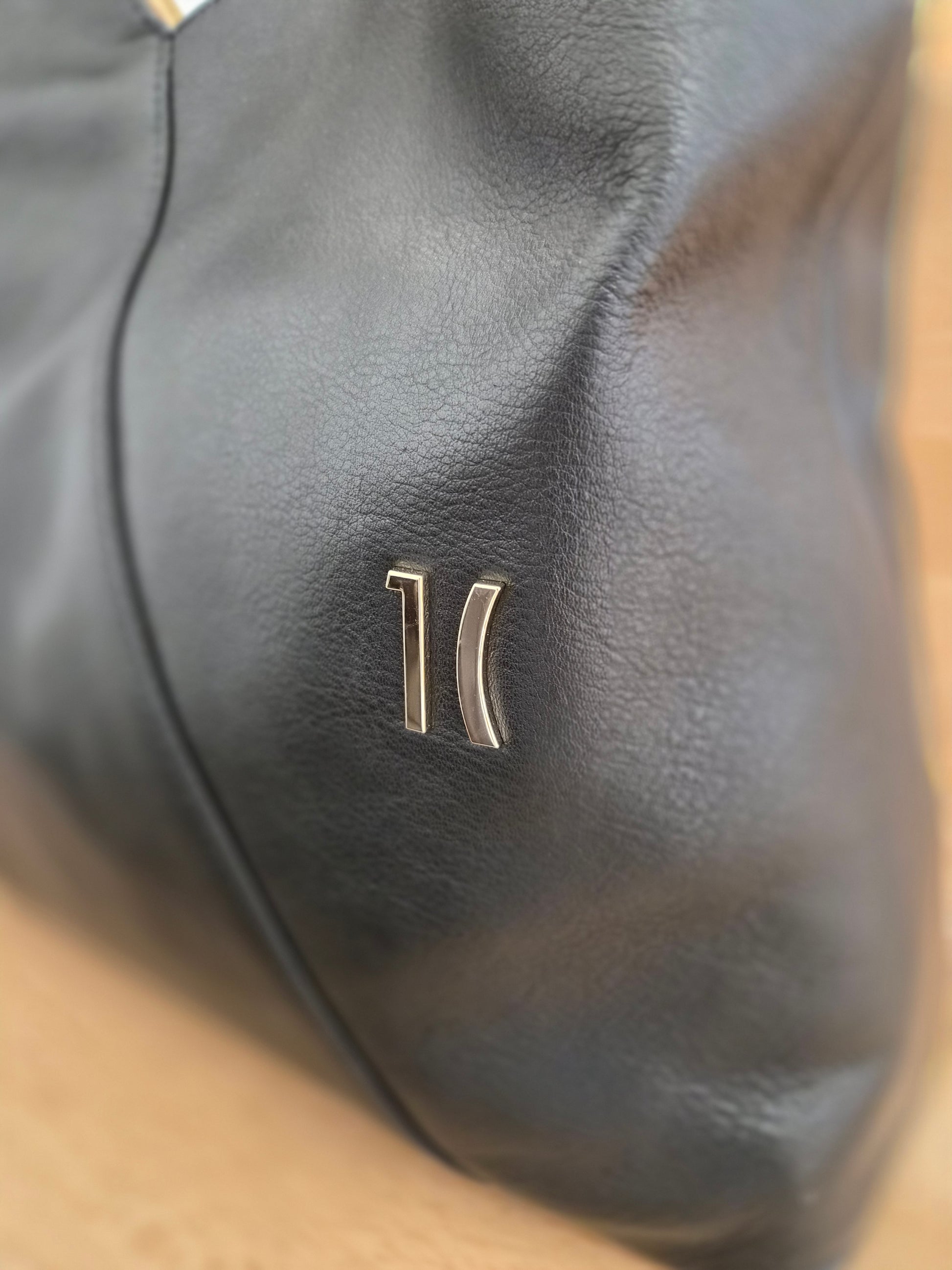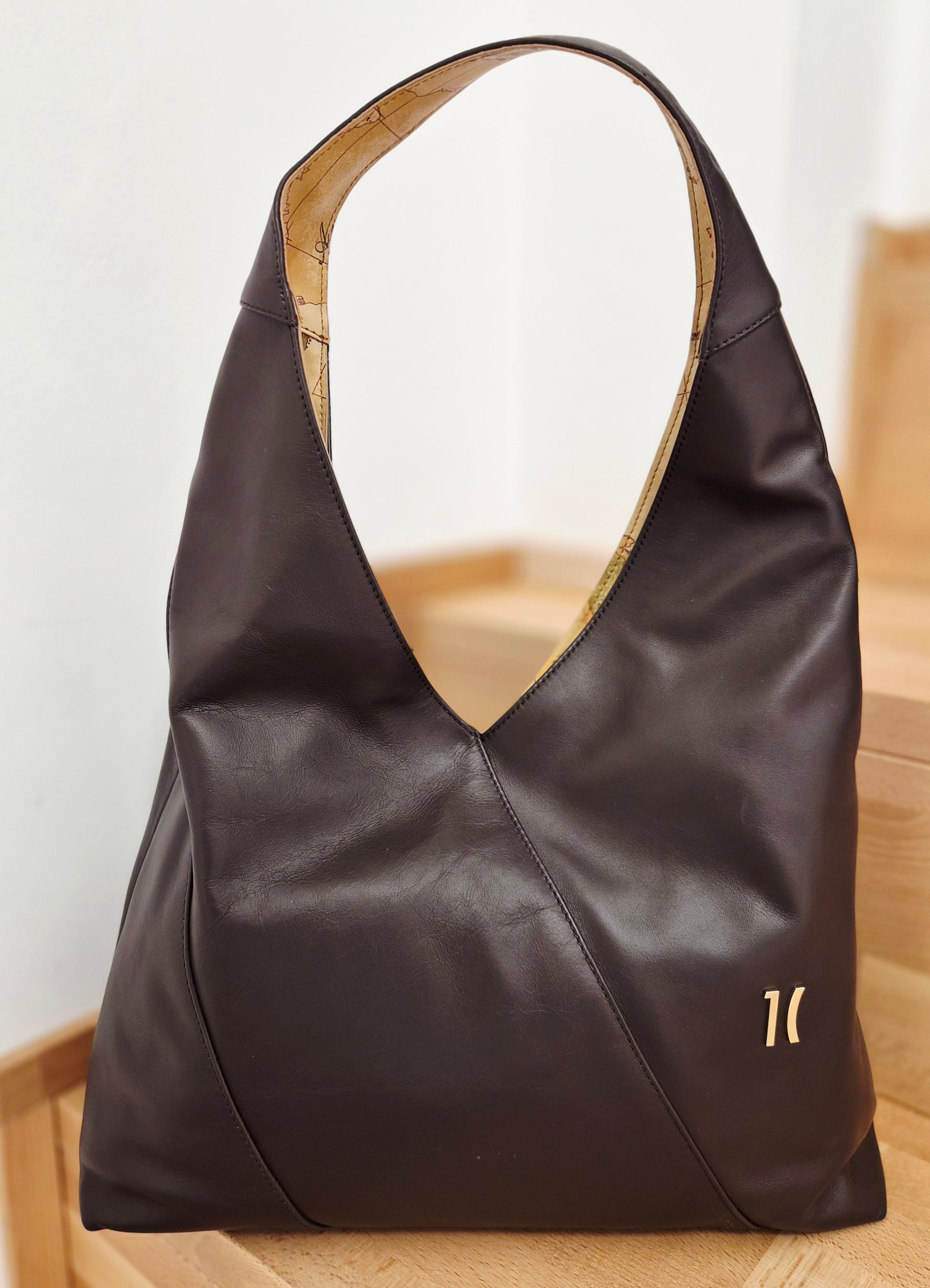 Borsa hobo a spalla in pelle spazzolata con chiusura calamitata e scalvo sottospalla a V.